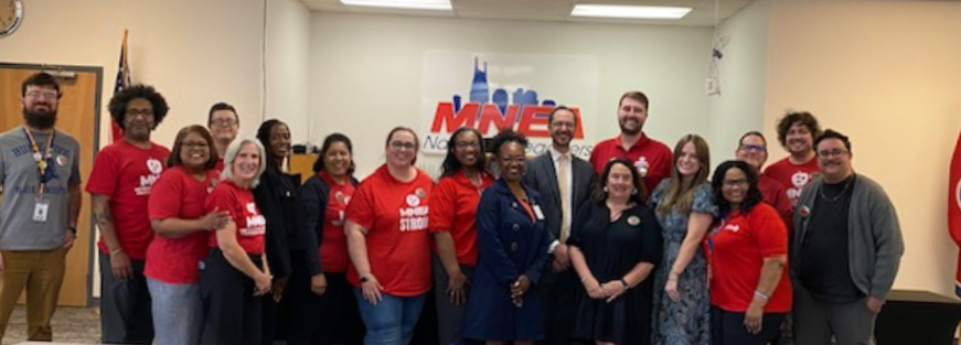 In addition, MNEA works on campaigns with other labor and community groups that are complementary to our vision and mission. This includes Central Labor Council of Nashville and Middle Tennessee, Nashville Organized for Action and Hope (NOAH), and the Tennessee Alliance to Reclaim our Schools (AROS).